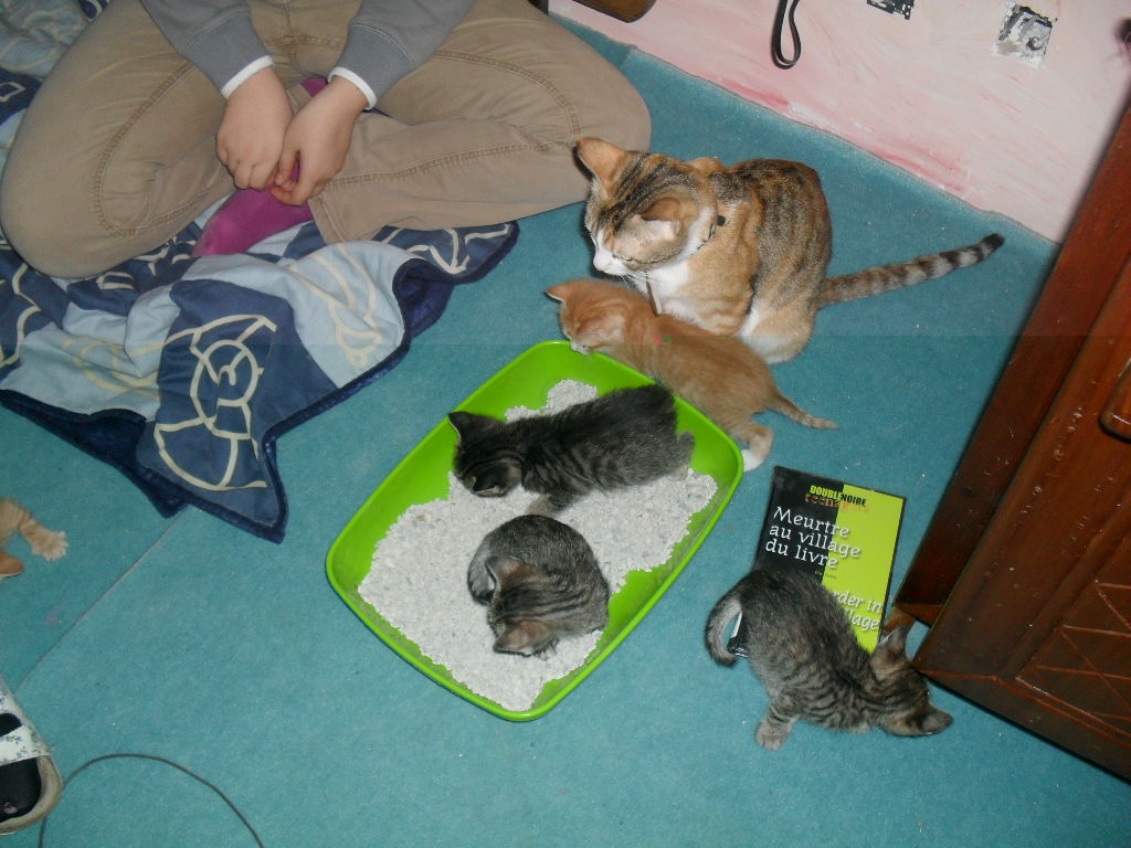 Ce n'est pas sa première portée et nous avons vu qu'elle s'occupe très bien de ses petits et ils sont devenus de très chouettes chatons, vite propres et indépendants.